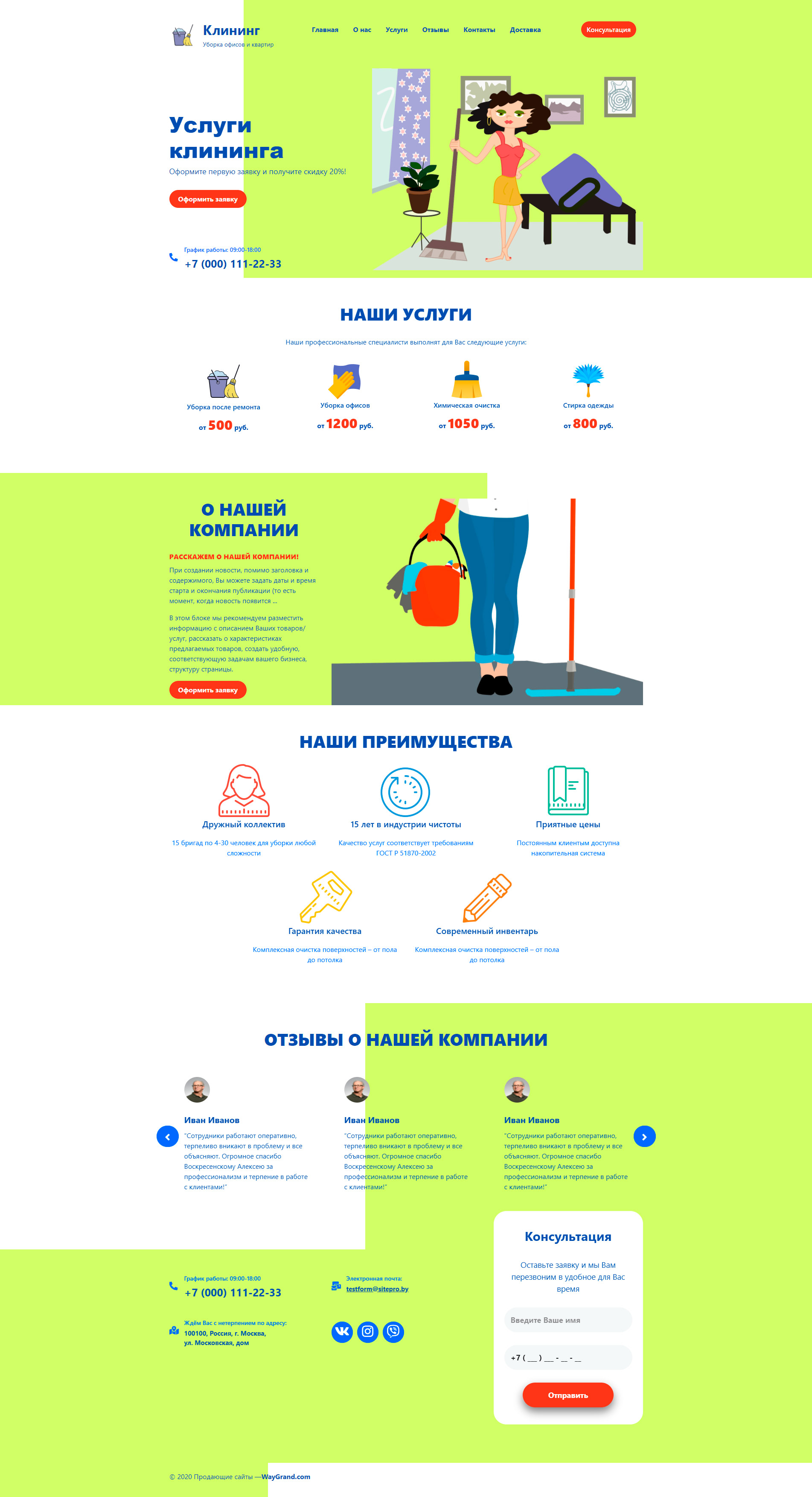 Закажите готовый продающий сайт лендинг #0628202 в Петропавловск-Камчатском за 1-3 дня «под ключ»: свёрстан, отрисован и готов к рекламе. Тематика шаблона «Услуги клининга».