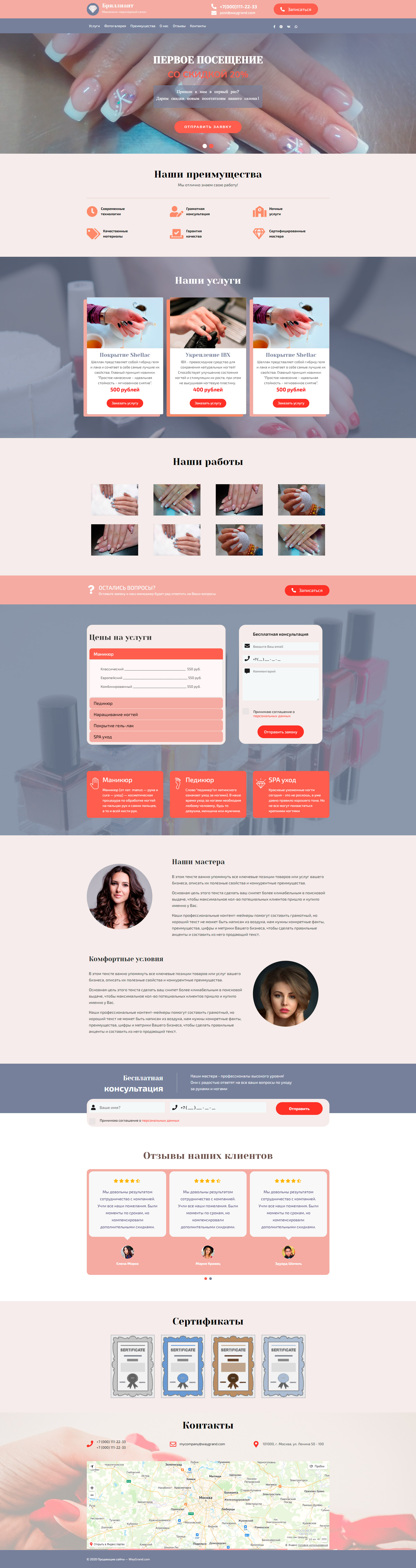 Закажите готовый продающий сайт лендинг #1107201 в Петропавловск-Камчатском за 1-3 дня «под ключ»: свёрстан, отрисован и готов к рекламе. Тематика шаблона «Салон маникюра и педикюра».