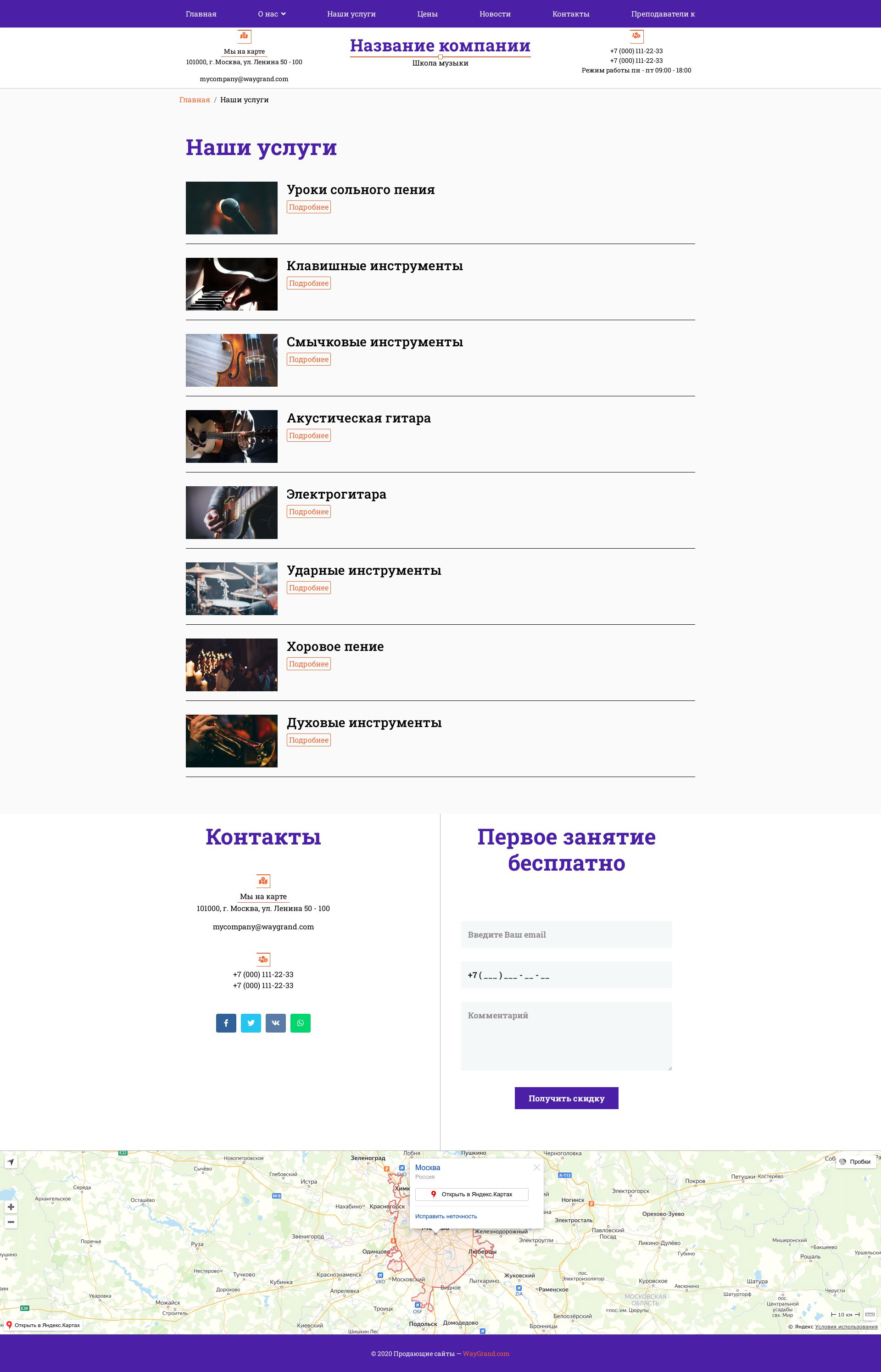 Закажите готовый продающий сайт визитка #1431301 в Петропавловск-Камчатском за 5-7 дня «под ключ»: свёрстан, отрисован и готов к рекламе. Тематика шаблона «Школа музыки».