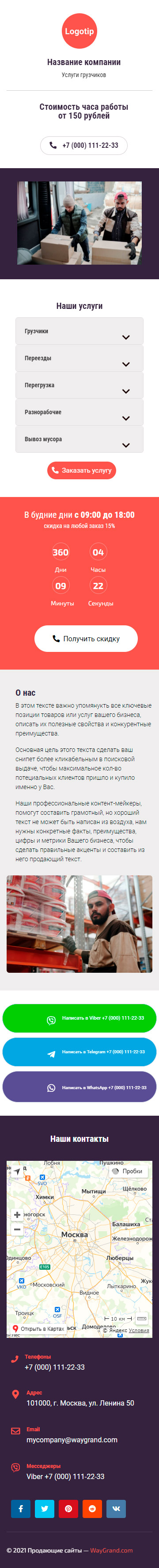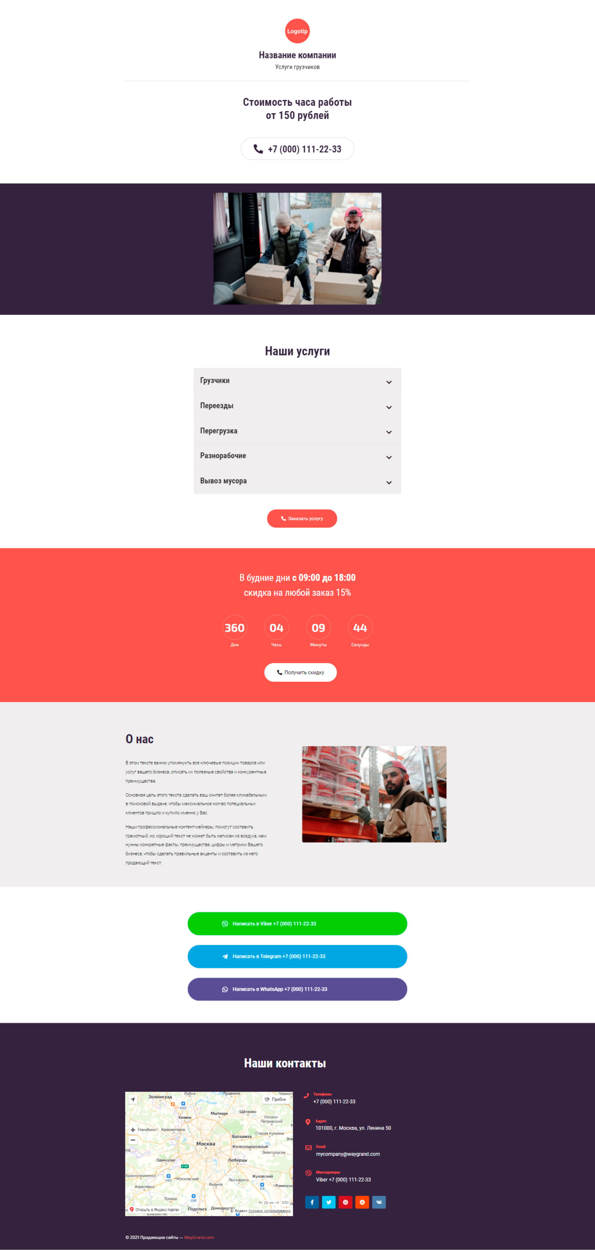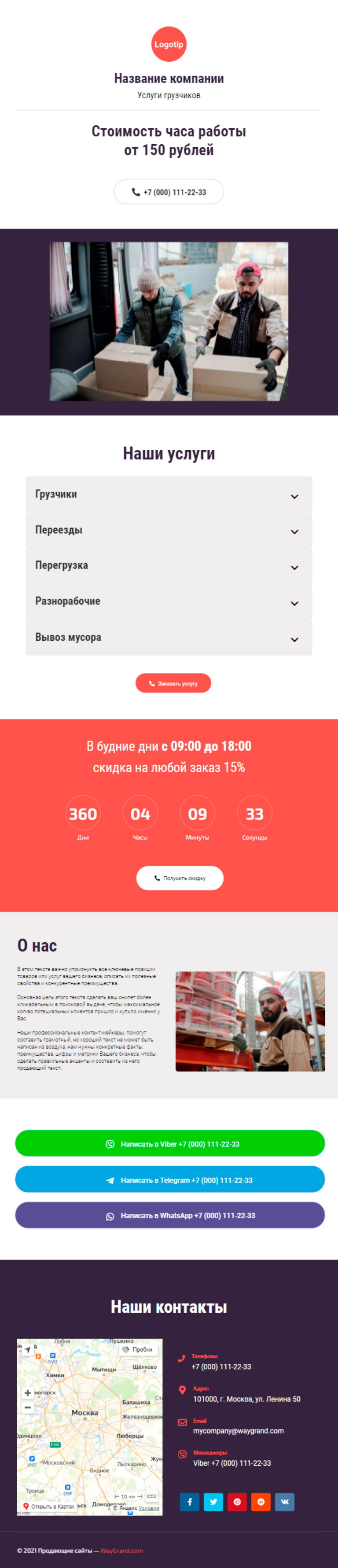 Закажите готовый продающий сайт визитка #2562101 в Петропавловск-Камчатском за 5-7 дня «под ключ»: свёрстан, отрисован и готов к рекламе. Тематика шаблона «Услуги грузчиков».