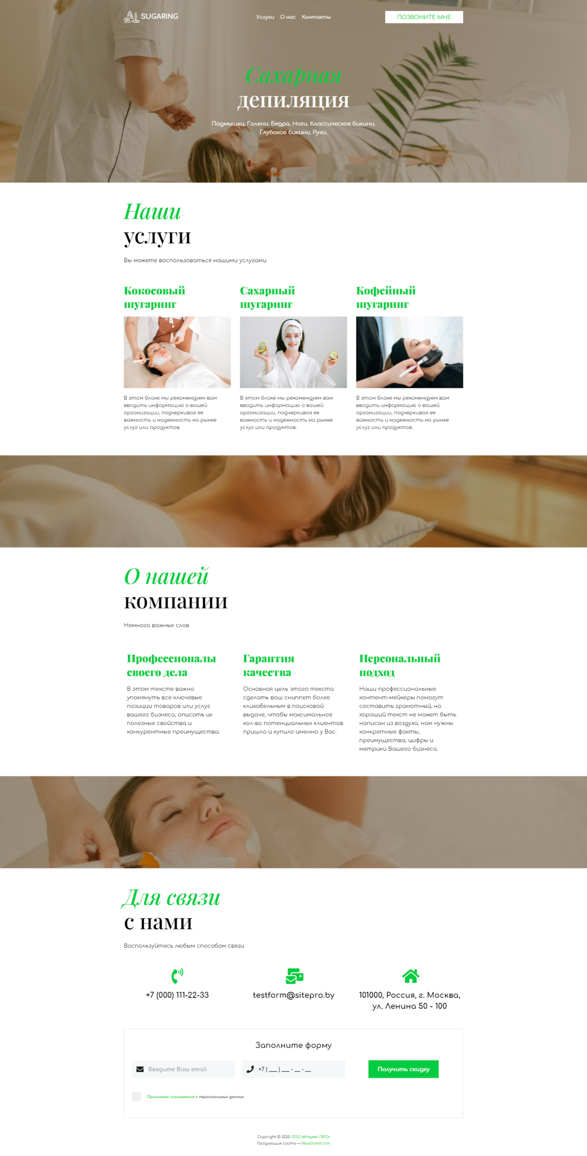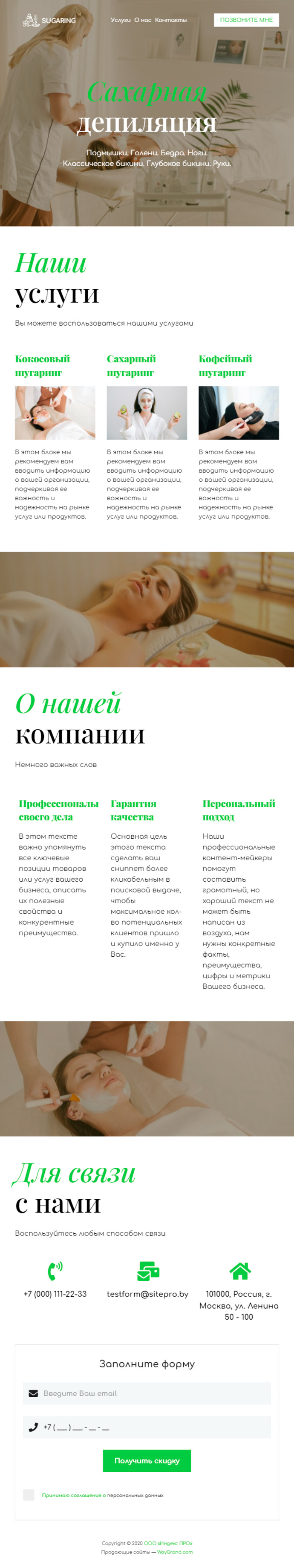 Закажите готовый продающий сайт визитка #1105101 в Петропавловск-Камчатском за 5-7 дня «под ключ»: свёрстан, отрисован и готов к рекламе. Тематика шаблона «Сахарная депиляция/Шугаринг».