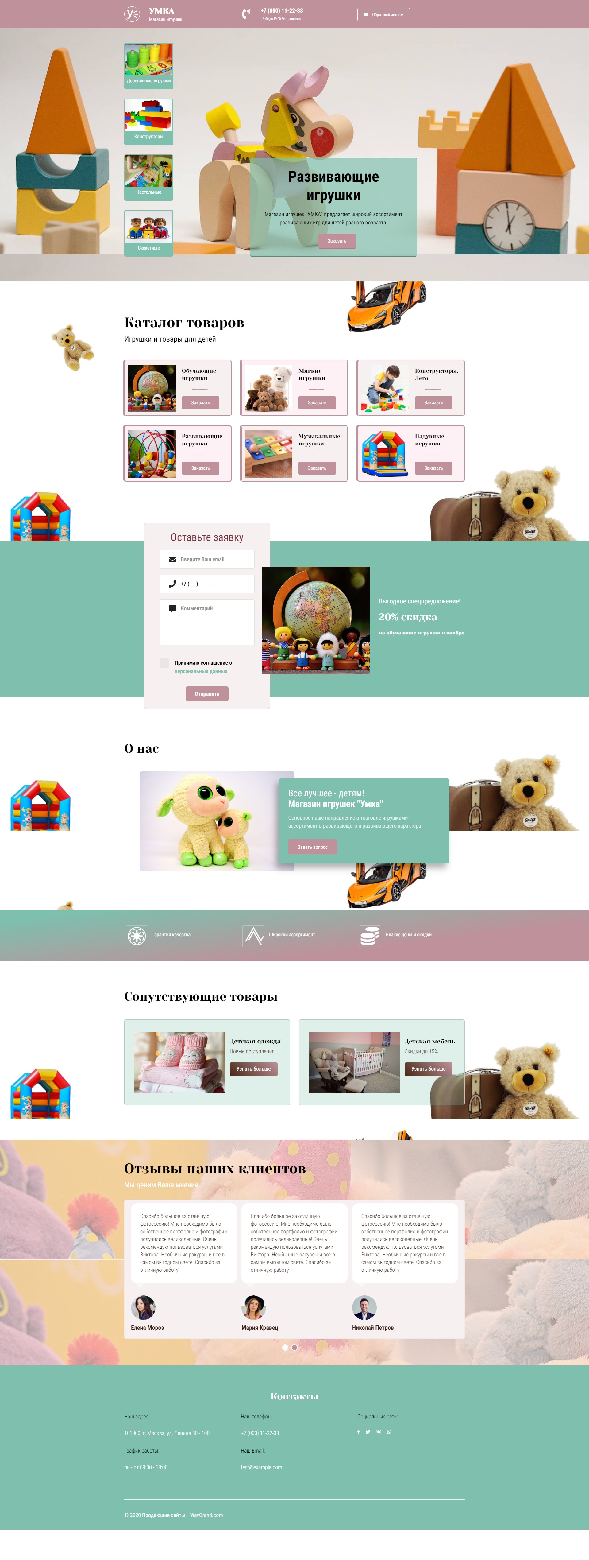 Закажите готовый продающий сайт лендинг #2442201 в Петропавловск-Камчатском за 1-3 дня «под ключ»: свёрстан, отрисован и готов к рекламе. Тематика шаблона «Магазин игрушек».