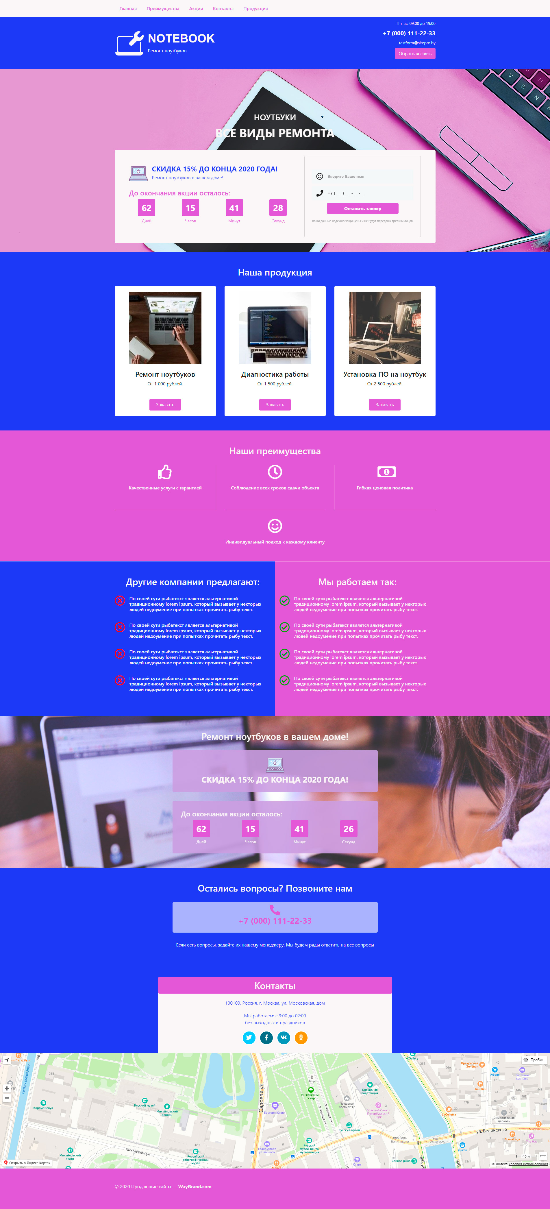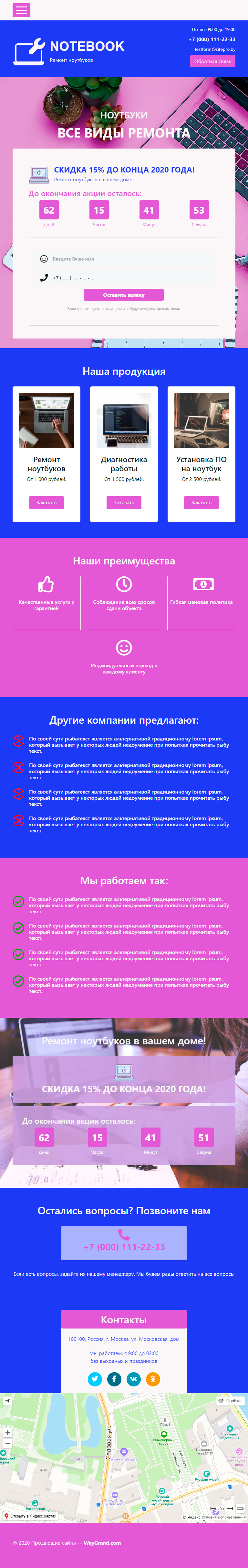 Закажите готовый продающий сайт лендинг #0719201 в Петропавловск-Камчатском за 1-3 дня «под ключ»: свёрстан, отрисован и готов к рекламе. Тематика шаблона «Ремонт ноутбуков».