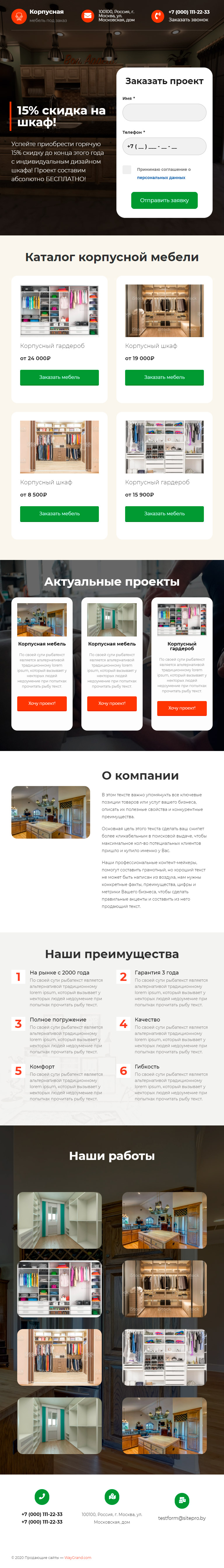 Закажите готовый продающий сайт лендинг #0915204 в Петропавловск-Камчатском за 1-3 дня «под ключ»: свёрстан, отрисован и готов к рекламе. Тематика шаблона «Корпусная мебель».
