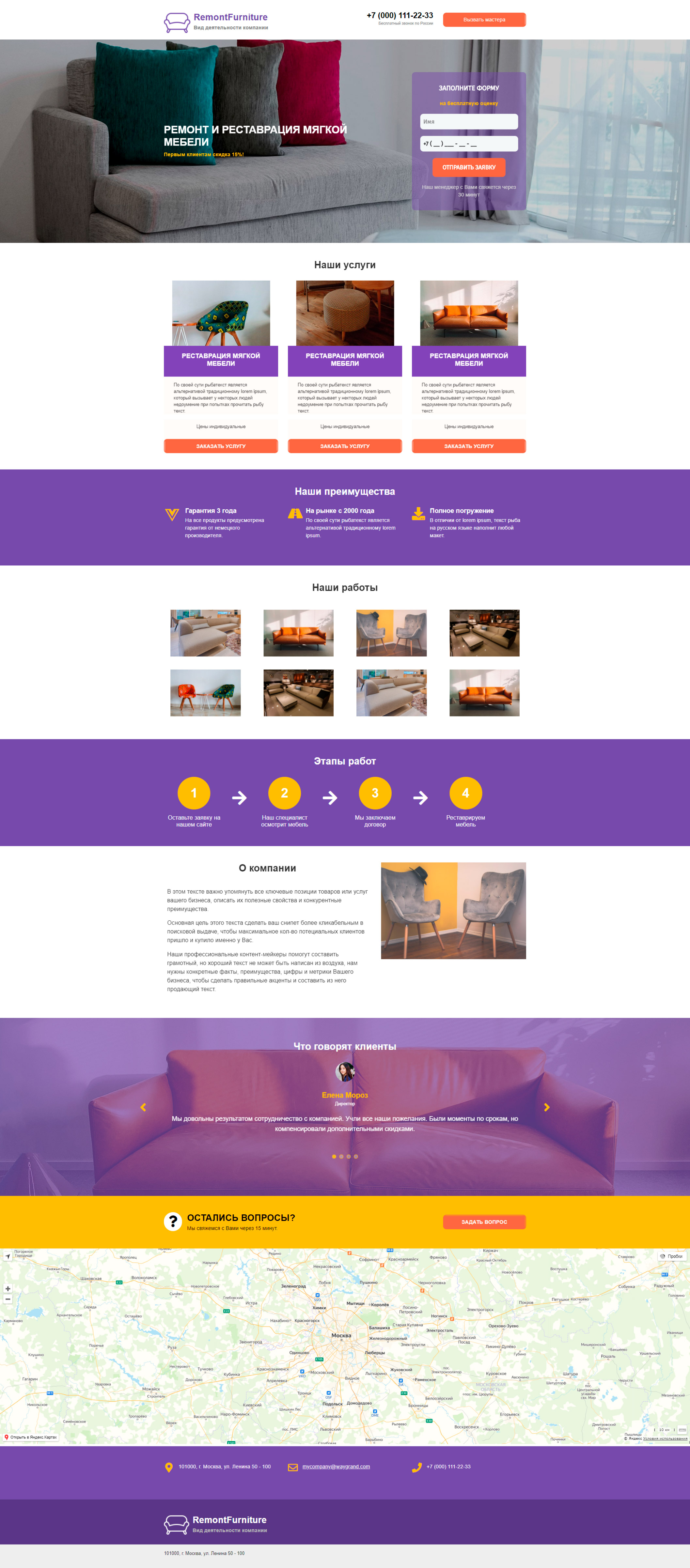 Закажите готовый продающий сайт лендинг #0924201 в Петропавловск-Камчатском за 1-3 дня «под ключ»: свёрстан, отрисован и готов к рекламе. Тематика шаблона «Ремонт и реставрация мебели».