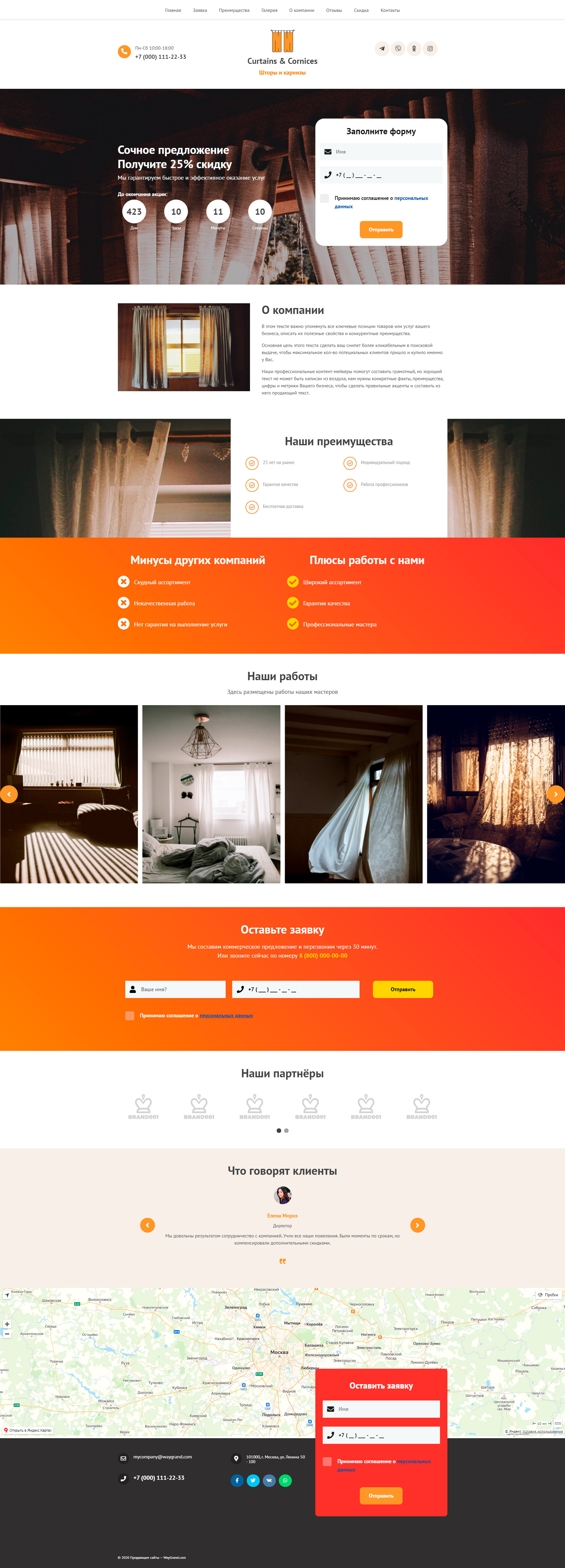 Закажите готовый продающий сайт лендинг #2209201 в Петропавловск-Камчатском за 1-3 дня «под ключ»: свёрстан, отрисован и готов к рекламе. Тематика шаблона «Карнизы и шторы».