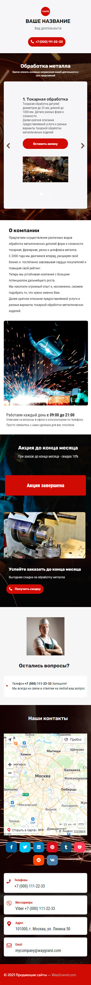 Закажите готовый продающий сайт визитка #1209101 в Петропавловск-Камчатском за 5-7 дня «под ключ»: свёрстан, отрисован и готов к рекламе. Тематика шаблона «Обработка металла».