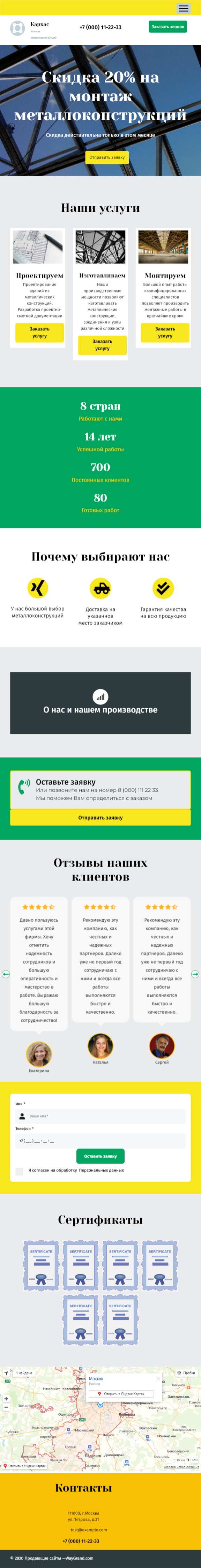 Закажите готовый продающий сайт лендинг #2027201 в Петропавловск-Камчатском за 1-3 дня «под ключ»: свёрстан, отрисован и готов к рекламе. Тематика шаблона «Металлоконструкции».