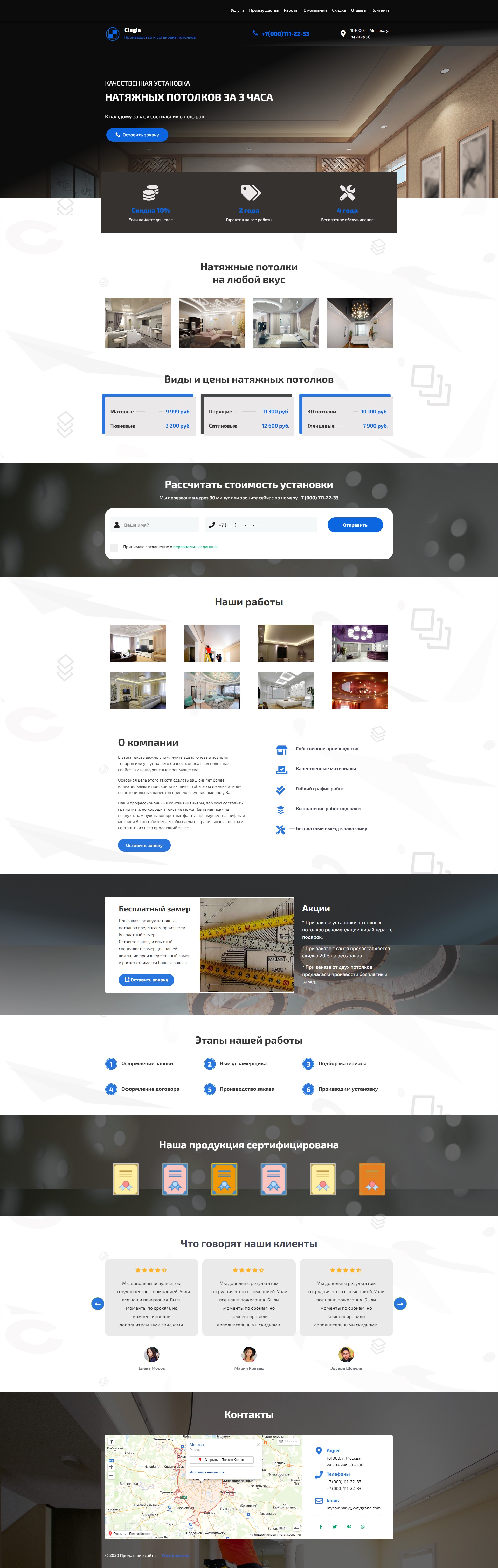 Закажите готовый продающий сайт лендинг #2029202 в Петропавловск-Камчатском за 1-3 дня «под ключ»: свёрстан, отрисован и готов к рекламе. Тематика шаблона «Натяжные потолки».