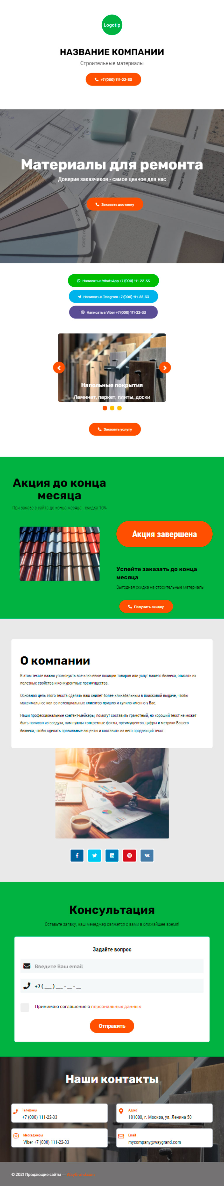 Закажите готовый продающий сайт визитка #2050101 в Петропавловск-Камчатском за 5-7 дня «под ключ»: свёрстан, отрисован и готов к рекламе. Тематика шаблона «Строительные материалы».