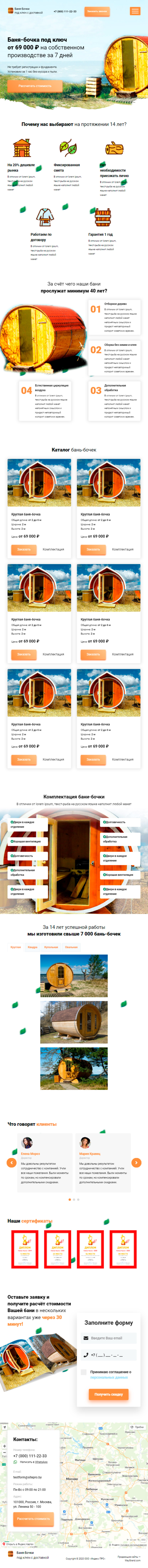 Закажите готовый продающий сайт лендинг #2172204 в Петропавловск-Камчатском за 1-3 дня «под ключ»: свёрстан, отрисован и готов к рекламе. Тематика шаблона «Баня-бочки».