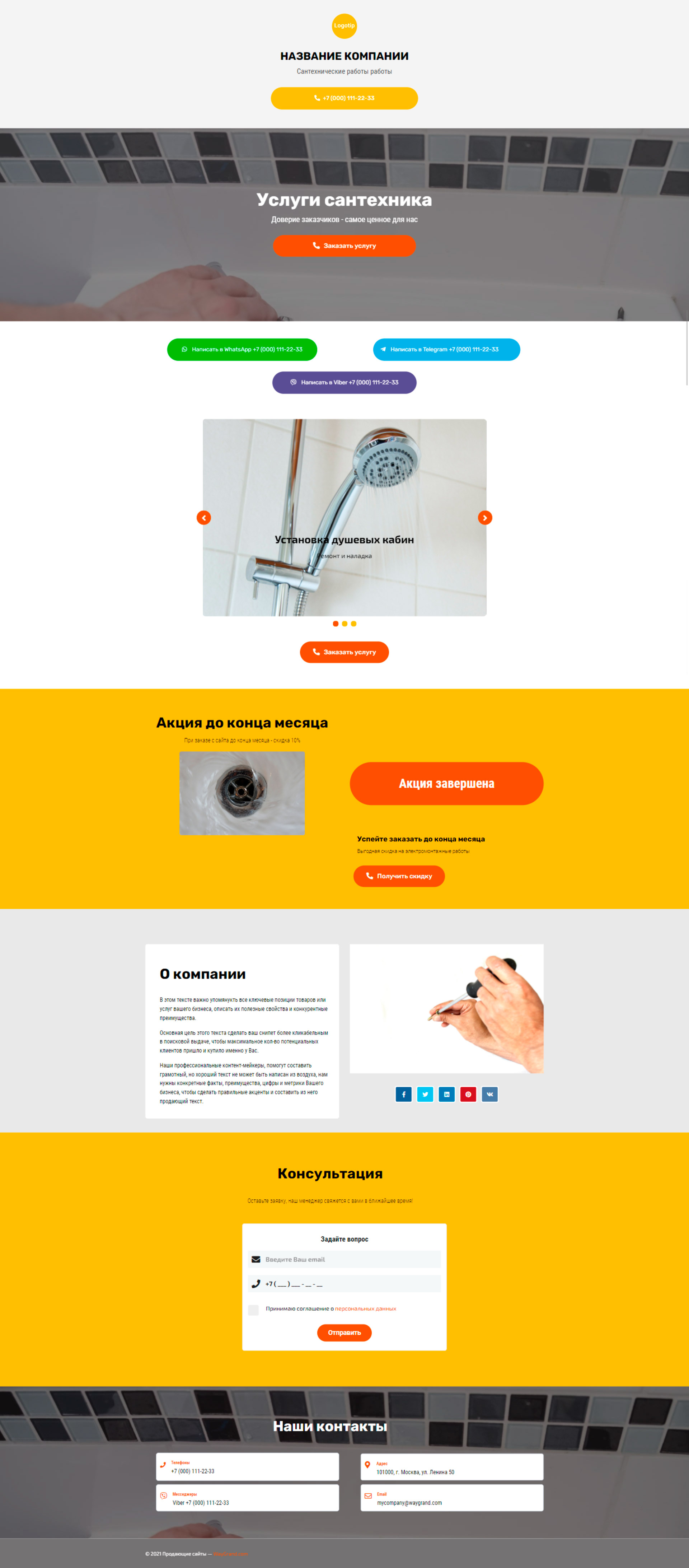 Закажите готовый продающий сайт визитка #2154101 в Петропавловск-Камчатском за 5-7 дня «под ключ»: свёрстан, отрисован и готов к рекламе. Тематика шаблона «Сантехнические работы».
