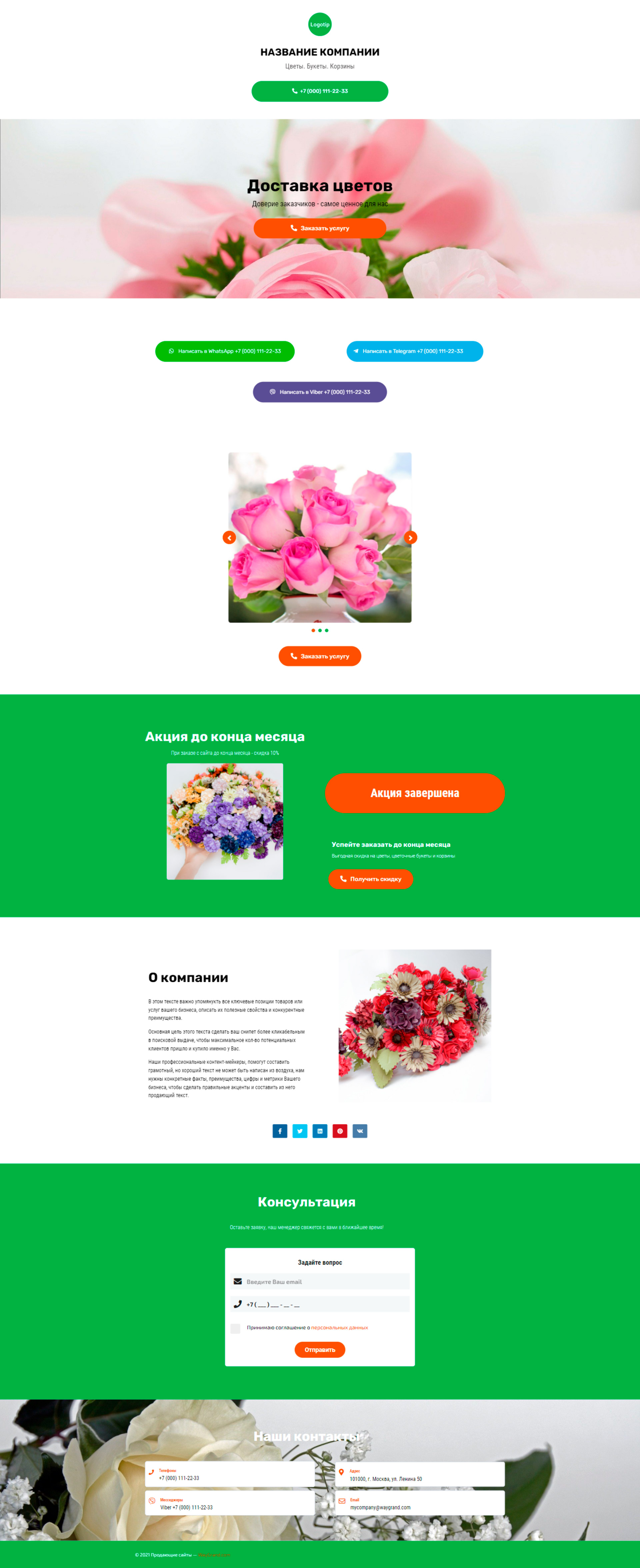 Закажите готовый продающий сайт визитка #2404101 в Петропавловск-Камчатском за 5-7 дня «под ключ»: свёрстан, отрисован и готов к рекламе. Тематика шаблона «Доставка цветов».