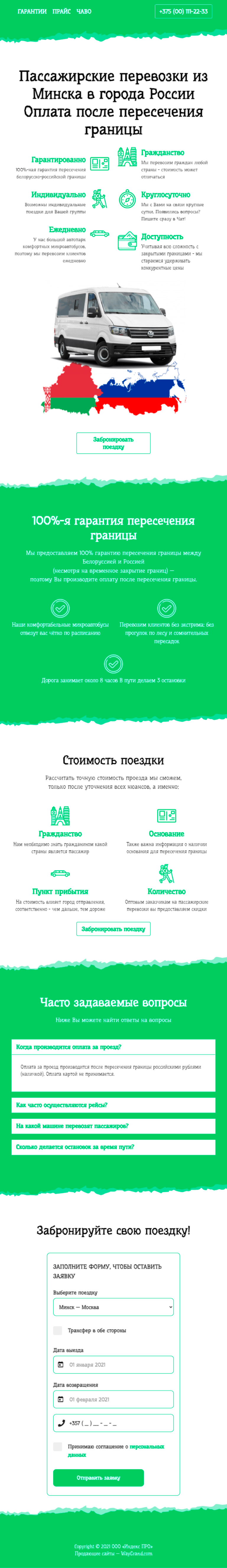 Закажите готовый продающий сайт лендинг #2528202 в Петропавловск-Камчатском за 1-3 дня «под ключ»: свёрстан, отрисован и готов к рекламе. Тематика шаблона «Пассажирские перевозки из Минска в города России».