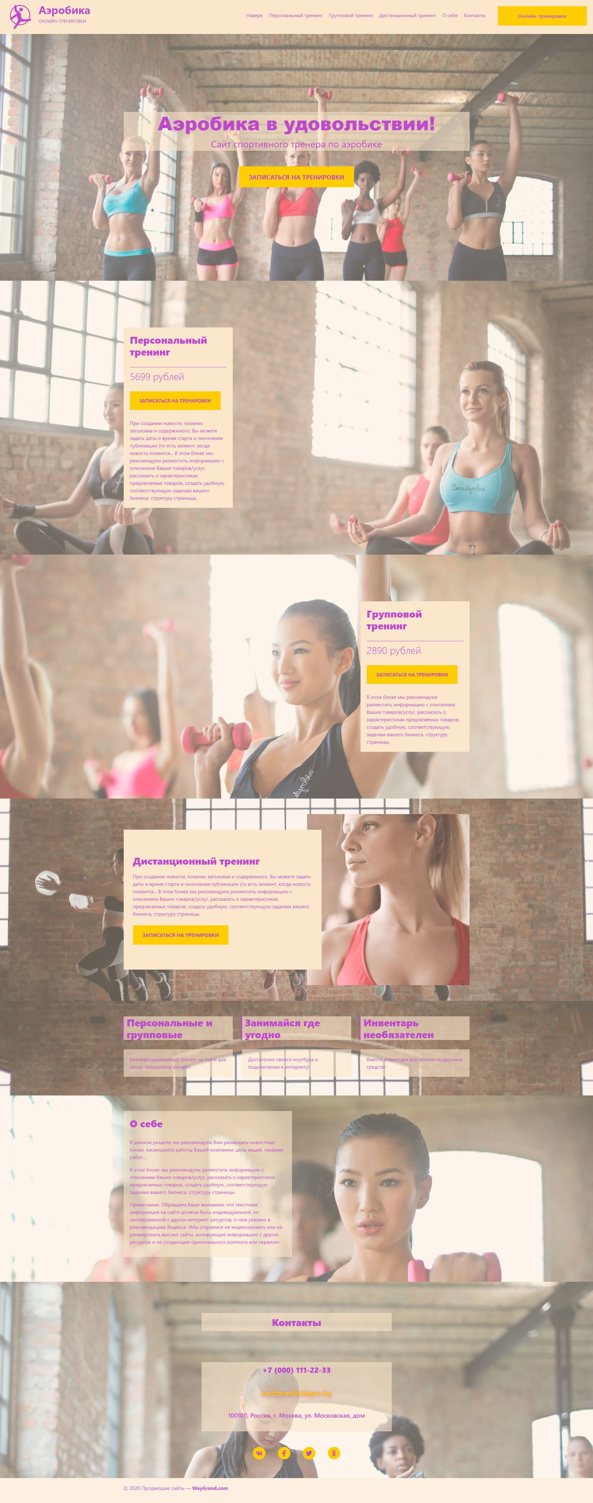 Закажите готовый продающий сайт лендинг #1955207 в Петропавловск-Камчатском за 1-3 дня «под ключ»: свёрстан, отрисован и готов к рекламе. Тематика шаблона «Аэробика онлайн тренировки».