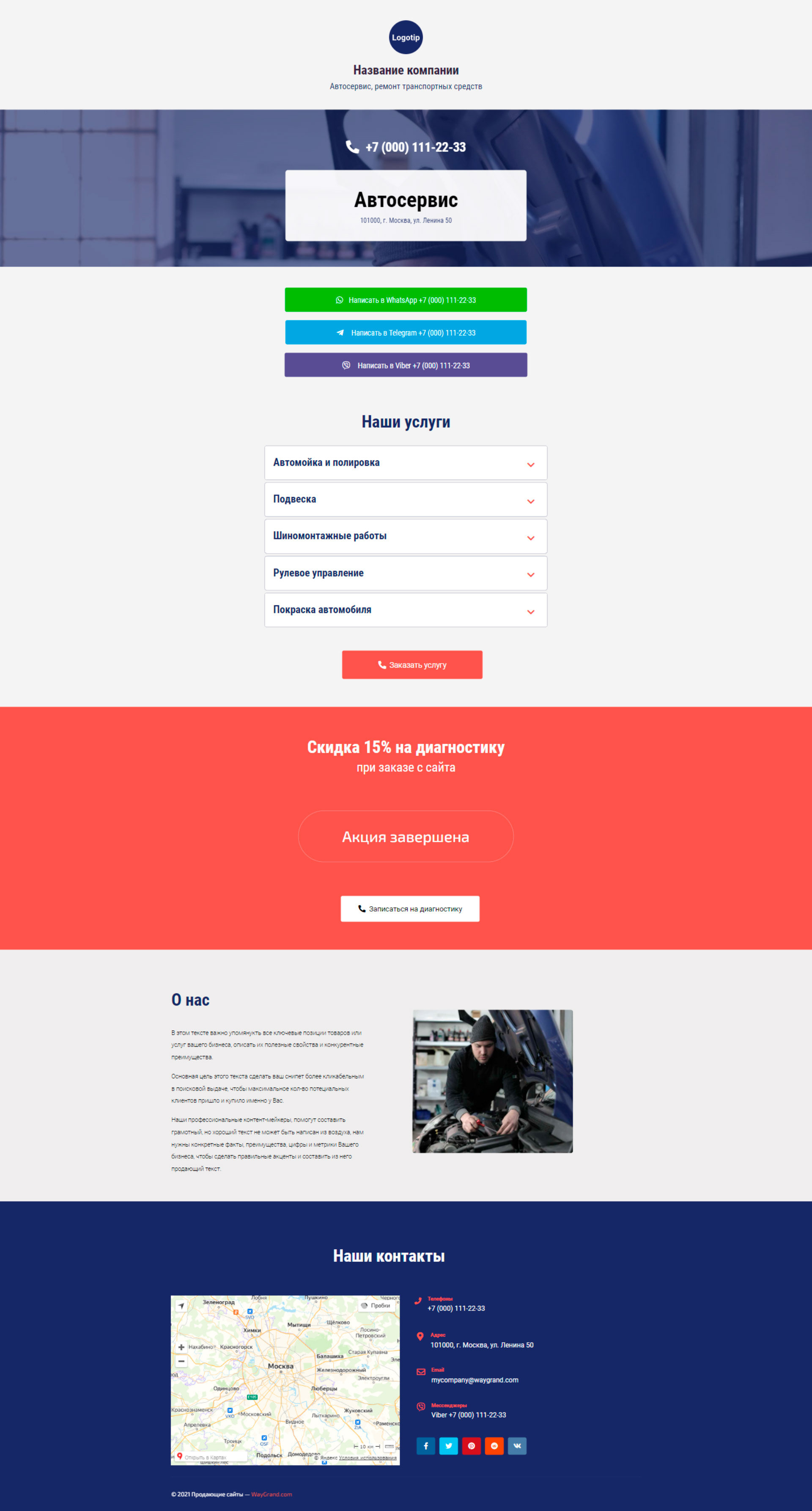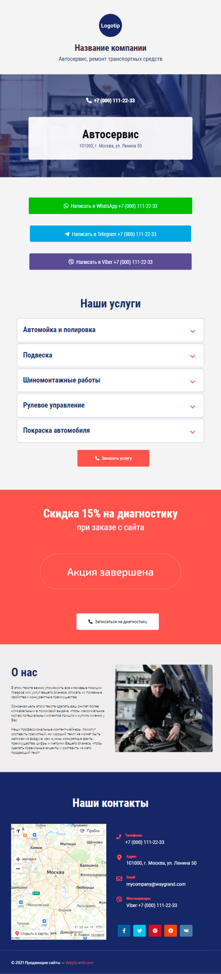 Закажите готовый продающий сайт визитка #0210101 в Петропавловск-Камчатском за 5-7 дня «под ключ»: свёрстан, отрисован и готов к рекламе. Тематика шаблона «Автосервис, ремонт транспортных средств».