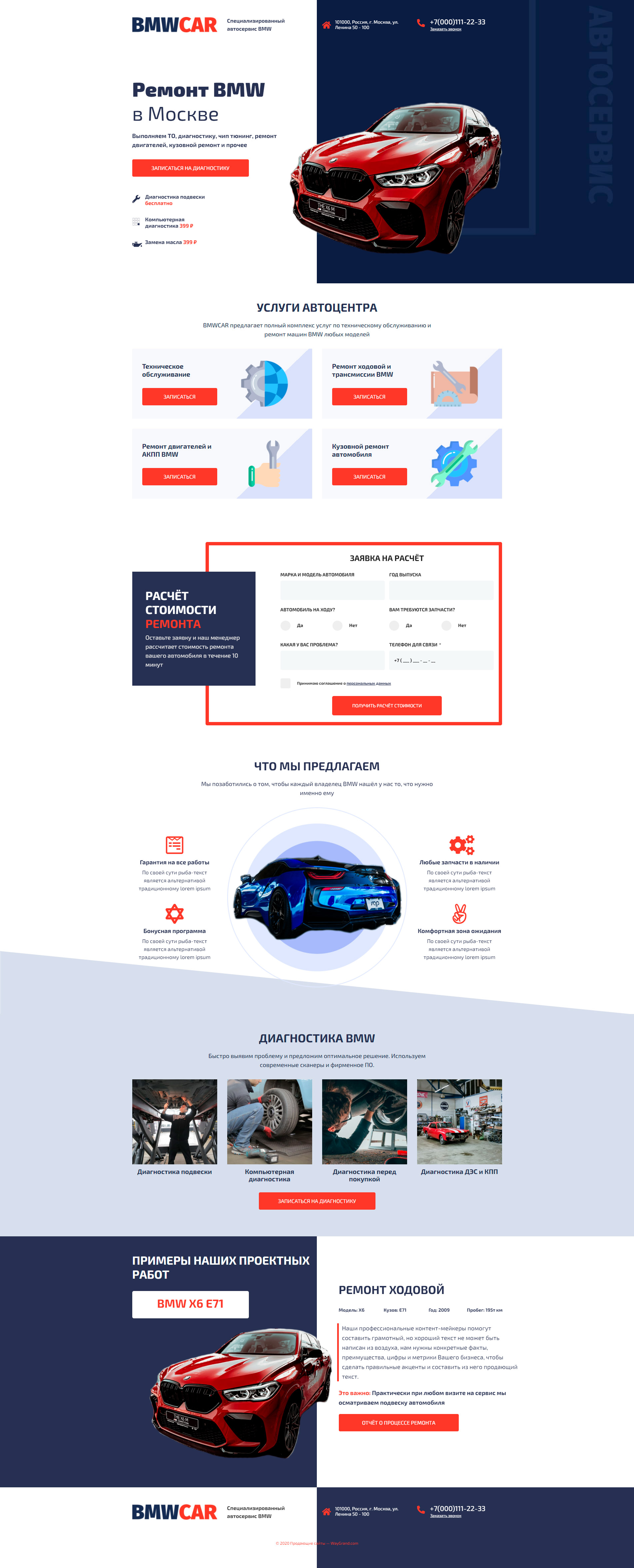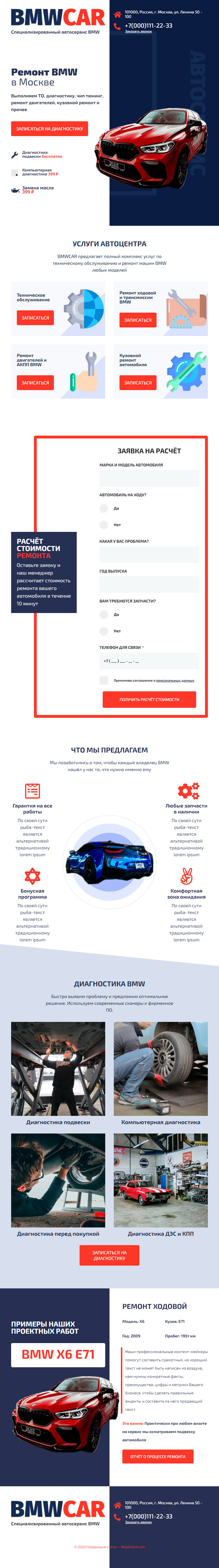 Закажите готовый продающий сайт лендинг #0210202 в Петропавловск-Камчатском за 1-3 дня «под ключ» по выгодным ценам на WayGrand: свёрстан, отрисован и готов к рекламе. Тематика шаблона «Ремонт BMW».