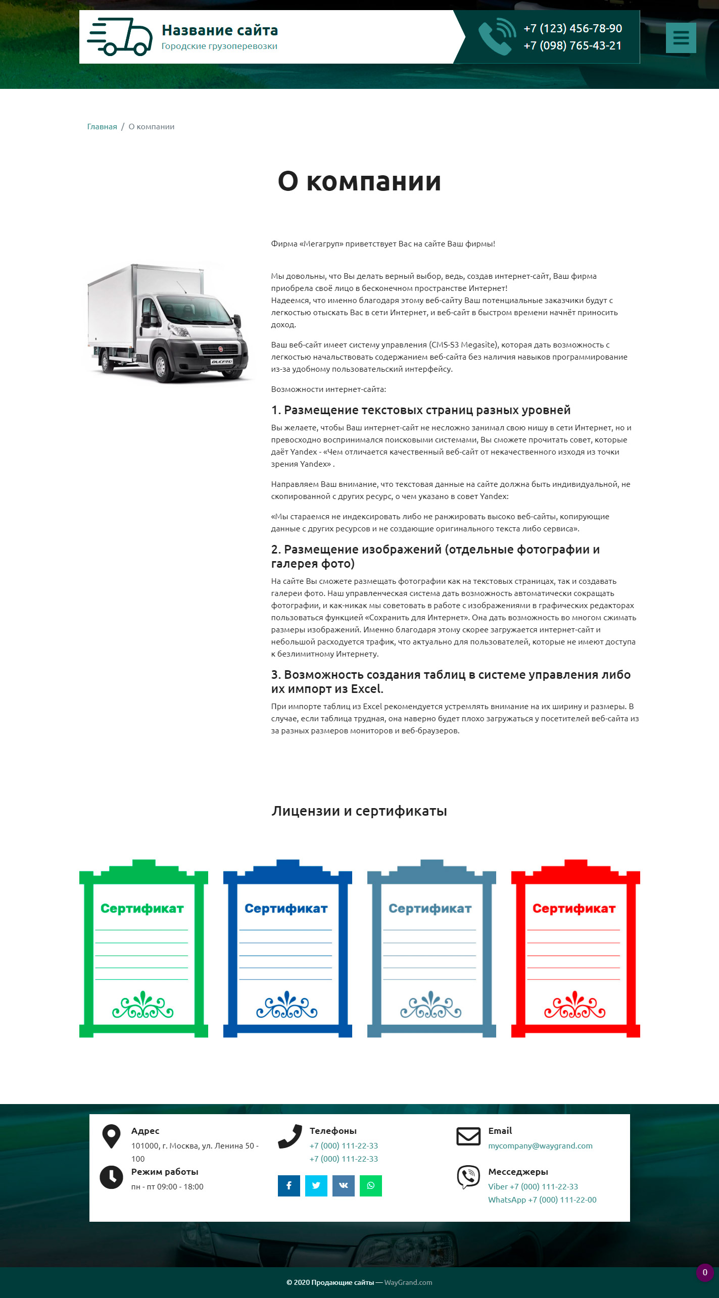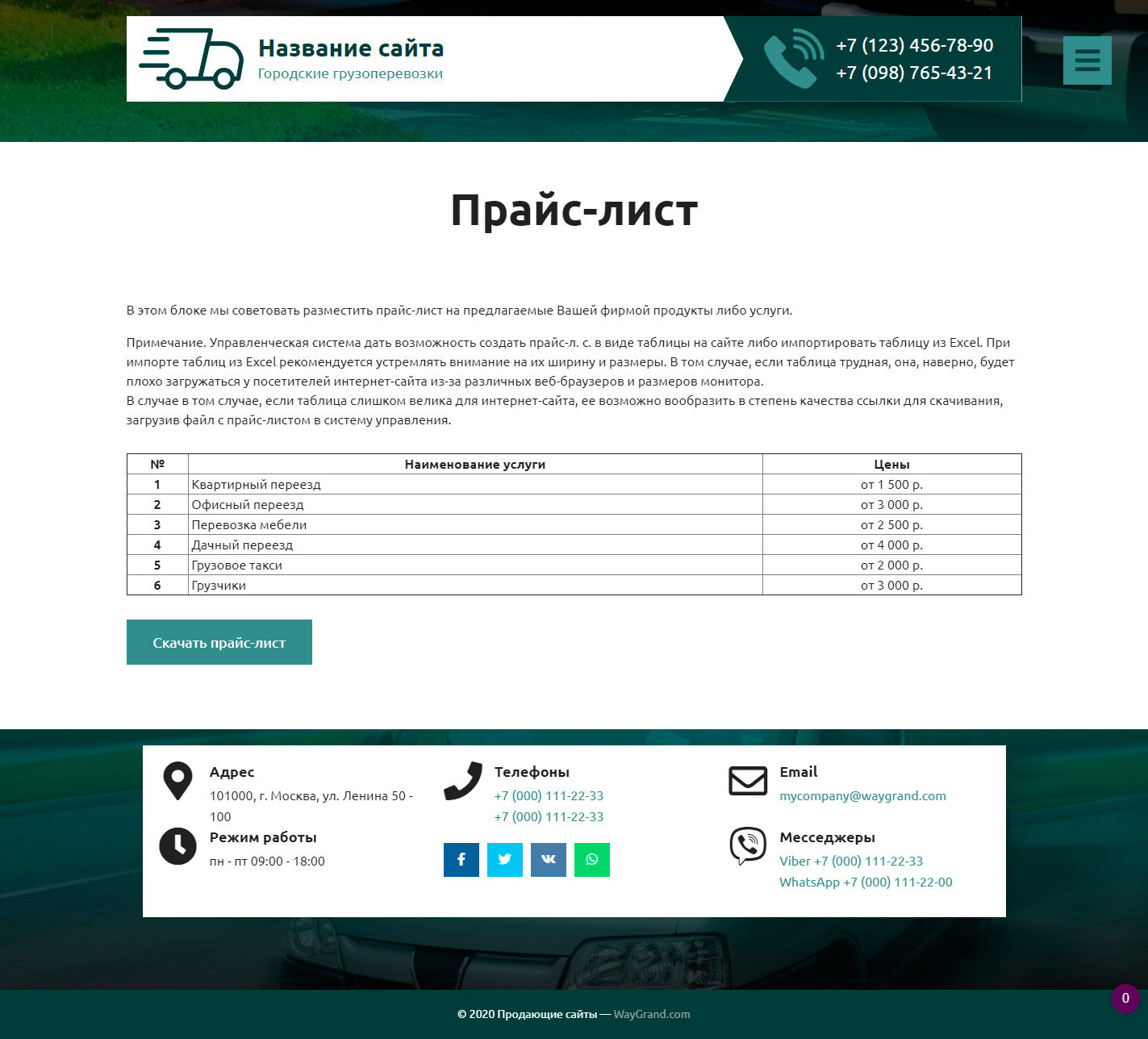 Закажите готовый продающий сайт визитка #2515302 в Петропавловск-Камчатском за 5-7 дня «под ключ» по доступным ценам на WayGrand: свёрстан, отрисован и готов к рекламе. Тематика шаблона «Городские грузоперевозки».