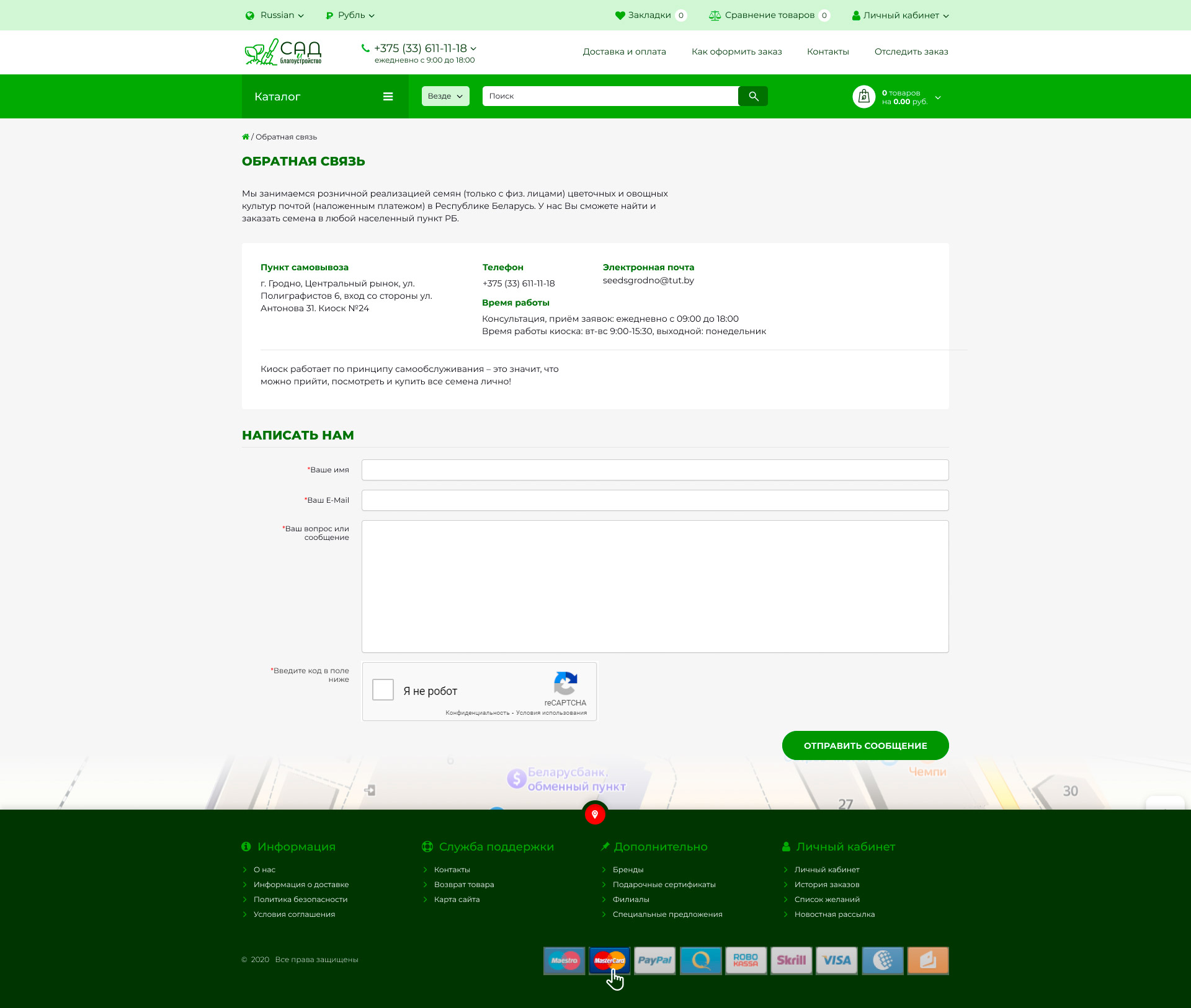 - Страница "Оплата и доставка"