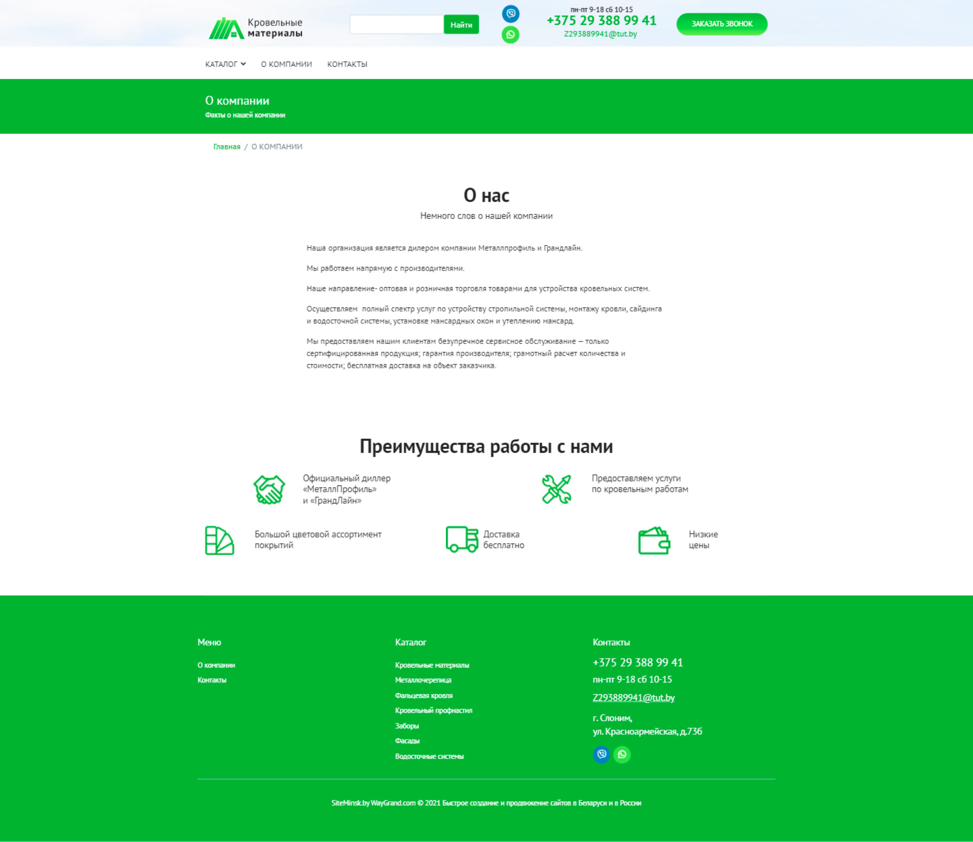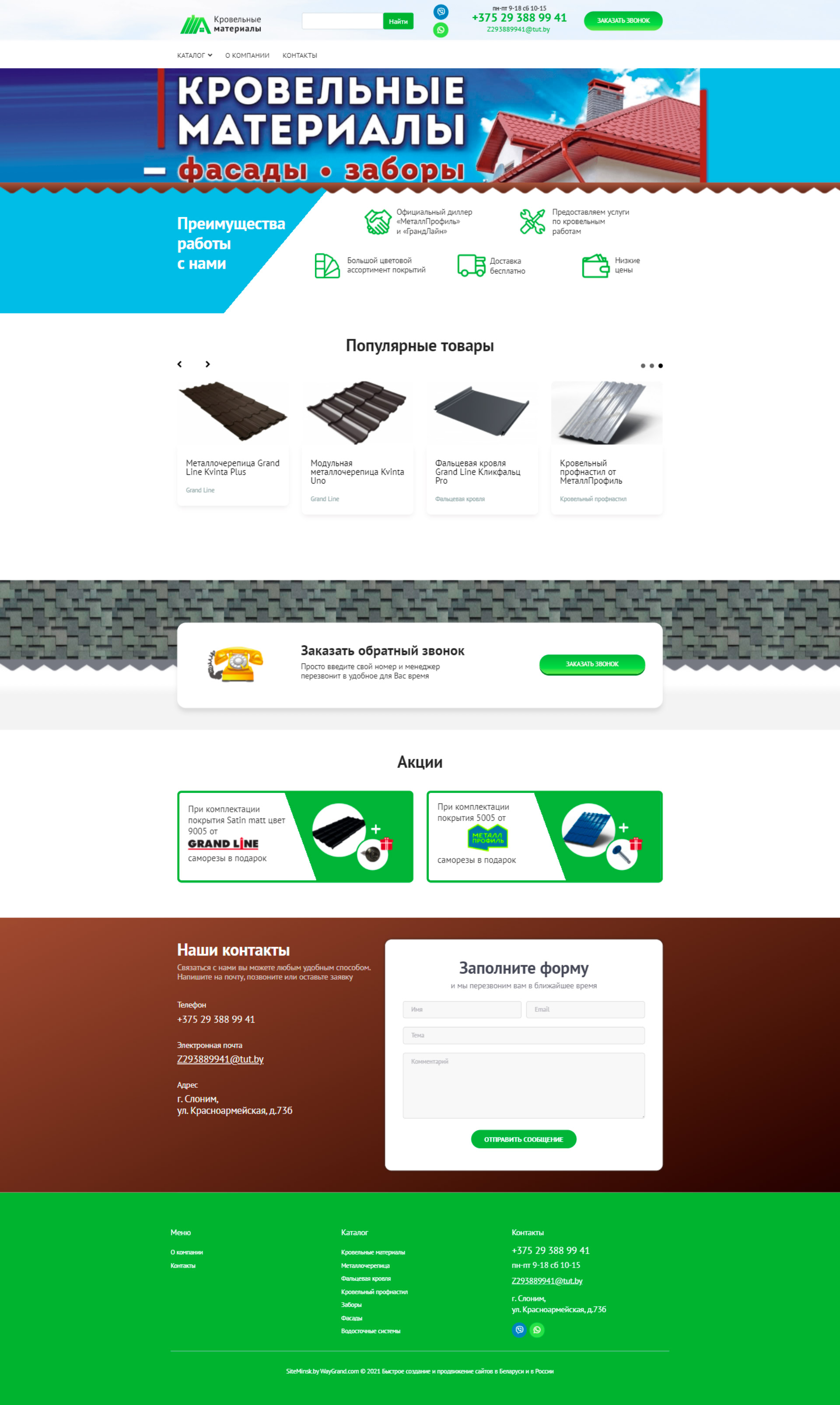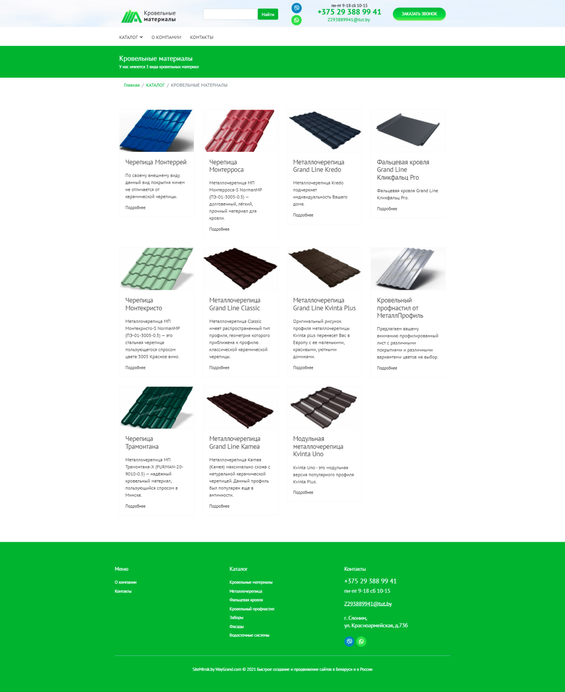 Закажите готовый продающий сайт визитка #324 в Петропавловск-Камчатском «под ключ» на waygrand по выгодной цене: свёрстан, отрисован и готов к рекламе. Тематика шаблона «Кровельные материалы».