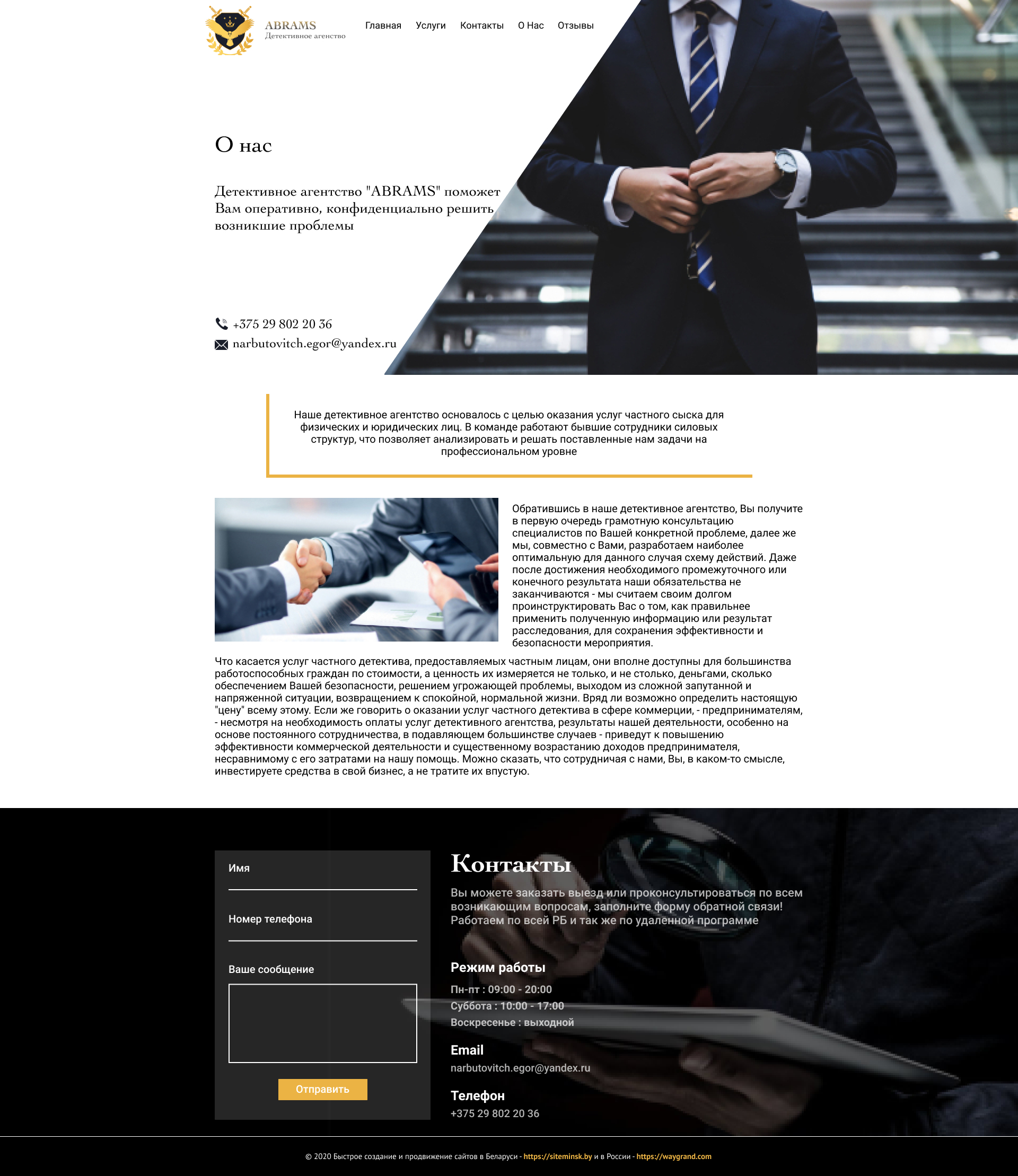Закажите готовый продающий сайт визитка #239 в Петропавловск-Камчатском за 5-7 дня «под ключ»: свёрстан, отрисован и готов к рекламе. Тематика шаблона «Частное детективное агентство».