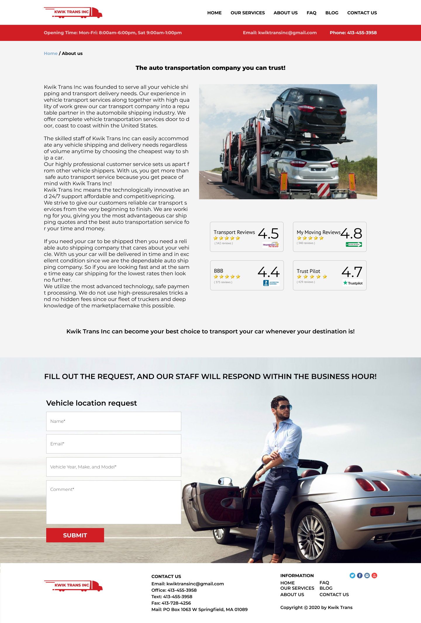 Закажите готовый продающий сайт визитка #223 в Петропавловск-Камчатском за 5-7 дня «под ключ»: свёрстан, отрисован и готов к рекламе. Тематика шаблона «Safe & Reliable National Auto Transport».